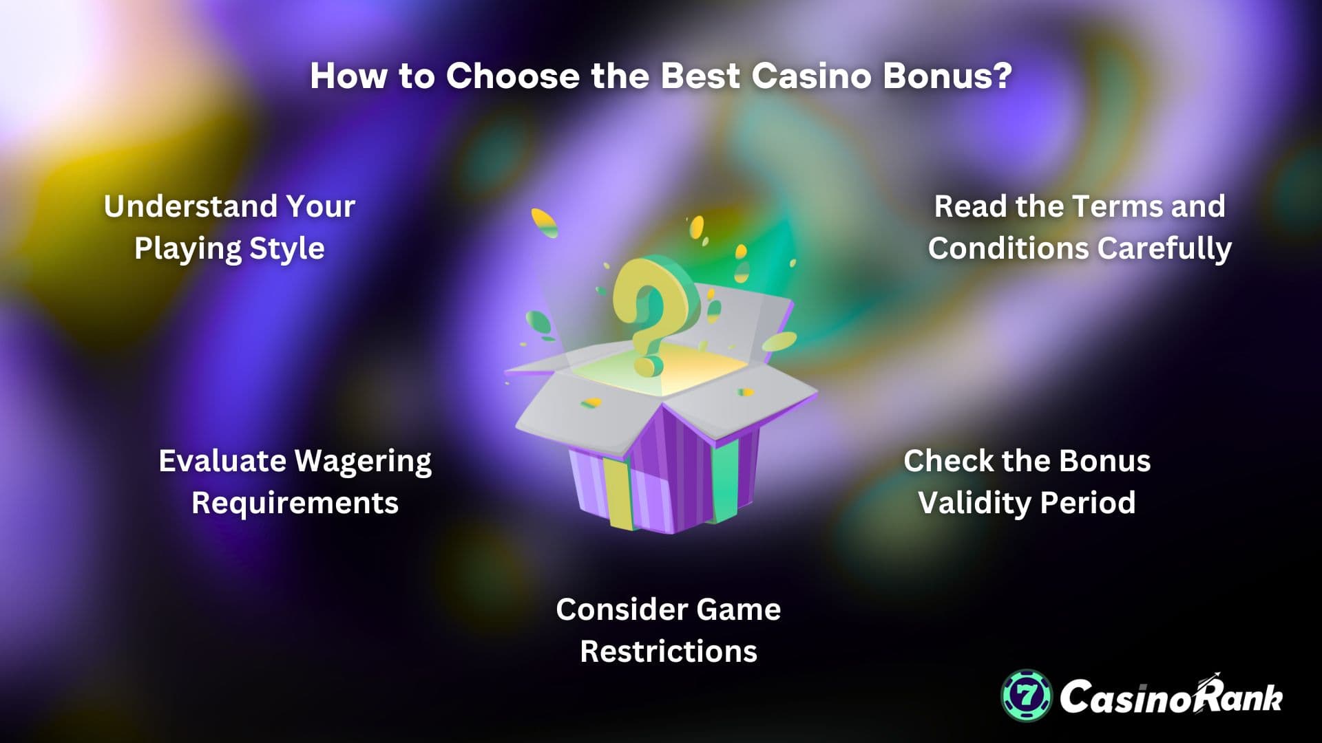 Choosing the best casino bonuses online can be tricky, as there are so many offers available. You need to consider several factors to ensure you're getting a bonus that suits your playing style and preferences.